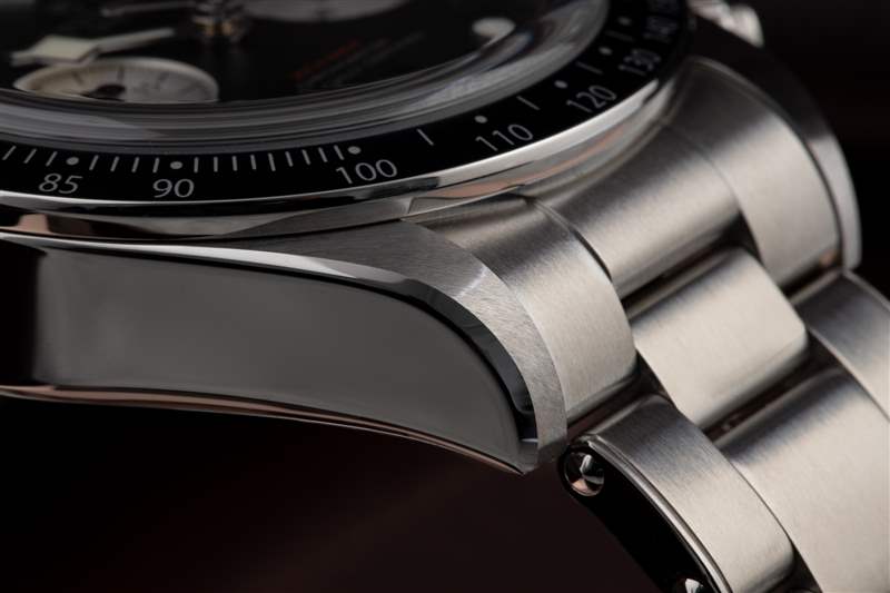 這些現代的200米防水計時碼比我們可能歸因于它們的任何復古前身都要大一些。根據都鐸王朝的說法,新款黑色海灣計時碼表比2017年原款帝舵黑灣計時碼表更薄,厚度為14.4毫米,就像2019年的Steel & Gold Chrono一樣。2017年的原始精鋼計時腕表,首次亮相時機芯的機芯與我們在這里看到的MT5813機芯相同,為14.9毫米。表殼設計的改進和機芯的重新定位,與第一款Black Bay Chrono in Steel相比,損失了半毫米,佩戴體驗也更少。我聯系了都鐸日內瓦進行確認,并且確實節省了材料,這些手表的表殼與2019年的Black Bay Chrono Steel和Gold中的表殼相同。