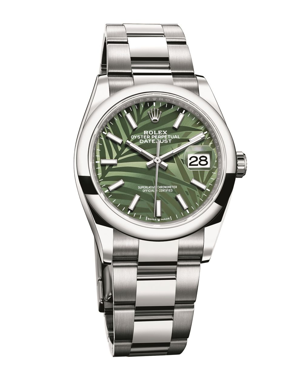 想晉升腕表內行人,提到勞力士就不能只認識綠水鬼。自去年大玩表面色彩后,2021年勞力士更為經典Datejust加入棕櫚葉、三角坑紋等圖騰與配色,其中橄欖綠面正是今年熱門!