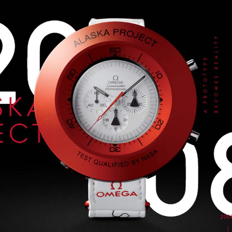 首先看到的是Speedmaster Alaska Project Limited Edition,這款表在2008年發表,它當年是為了慶祝「阿拉斯加計劃」40年而復刻再生,手表的設計與一般登月表類似,不過兩枚計時小表盤的指針造型經過重新設計,請中央計時大秒針也涂上紅色,更特別的是,歐米茄為了讓手表能夠有效對抗外太空的極端溫差而替手表打造了一枚造型夸張的紅色保護外殼,一旦裝上外殼后,手表就有點像《侏羅紀世界》里會出現的展開頸傘后的雙脊龍般醒目,紅色的鋁制保護殼標榜可以抵御-148℃~260℃的溫度,但通常表主應該還是傾向不要裝殼直接佩戴。這款表當年的定價為5,500美金(折合約港幣43,160),可是到2022年6月時二級市場開價已經升高到了23,900美金(折合約港幣187,560),比起一年前的價格升高67%之多。