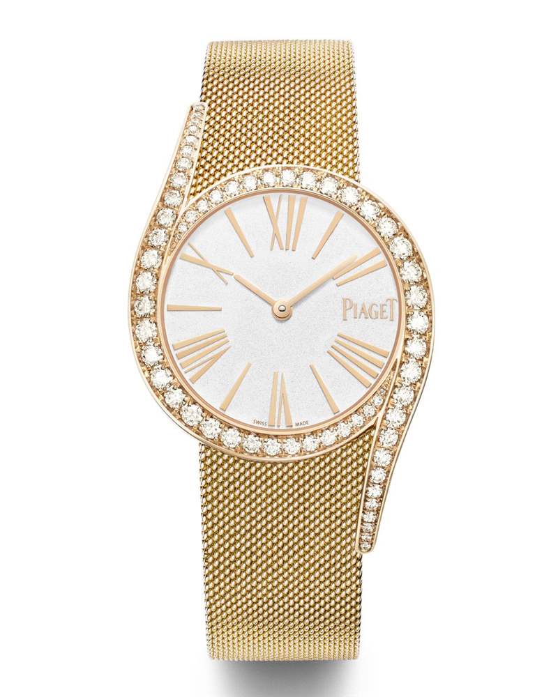 Piaget在60、70年代帶動(dòng)一股華美不俗的珠寶表風(fēng)潮,當(dāng)時(shí)賈姬、伊莉莎白泰勒都是顧客。Limelight Gala系列腕表靈感就源自于1973年一枚橢圓形不對稱表耳加上金雕修飾女表,能讓手顯得更修長。其中一部分的現(xiàn)代新表款改搭配米蘭織帶表帶,除了帶起來更柔軟細(xì)致,也更能展現(xiàn)Piaget的黃金之手工藝。