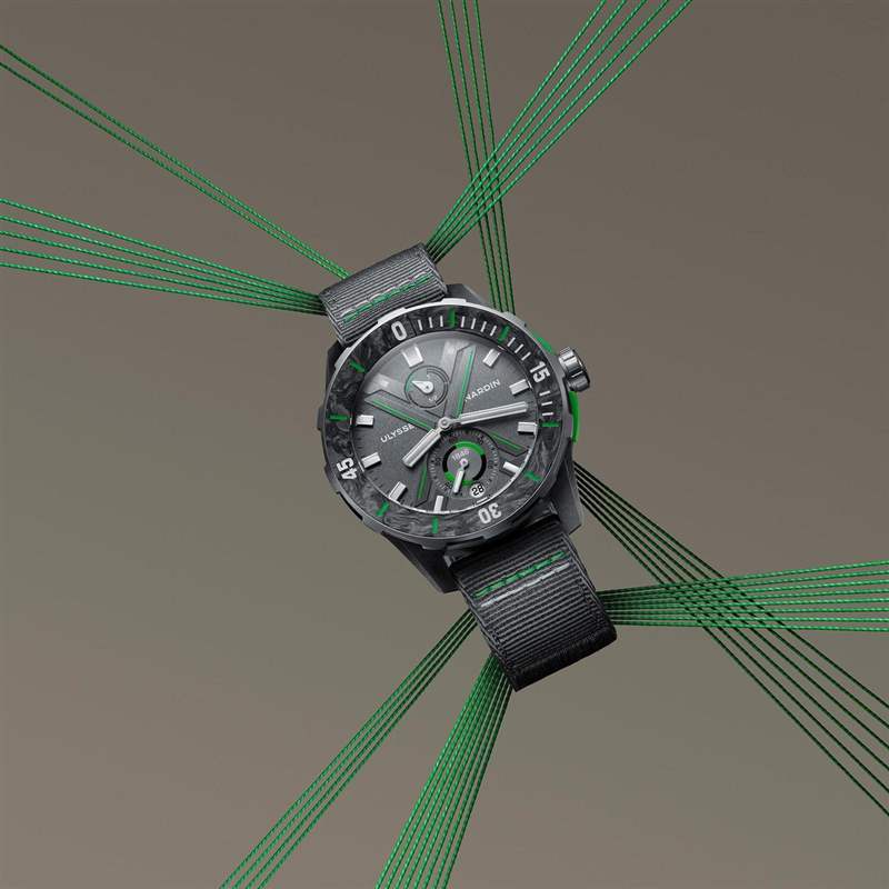 環保議題是這幾年許多品牌努力的方向,而雅典表(ULYSSE NARDIN)在2020年時發布一款Diver Net概念表,首度嘗試使用回收材質打造手表,而今年將其正式商品化,選擇世界環球帆船賽聯名限量表上率先運用,從表殼、底蓋到表帶皆是回收再生材質制成,甚至是機芯也使用再生精鋼與黃銅材質制作,全面落實環保理念。