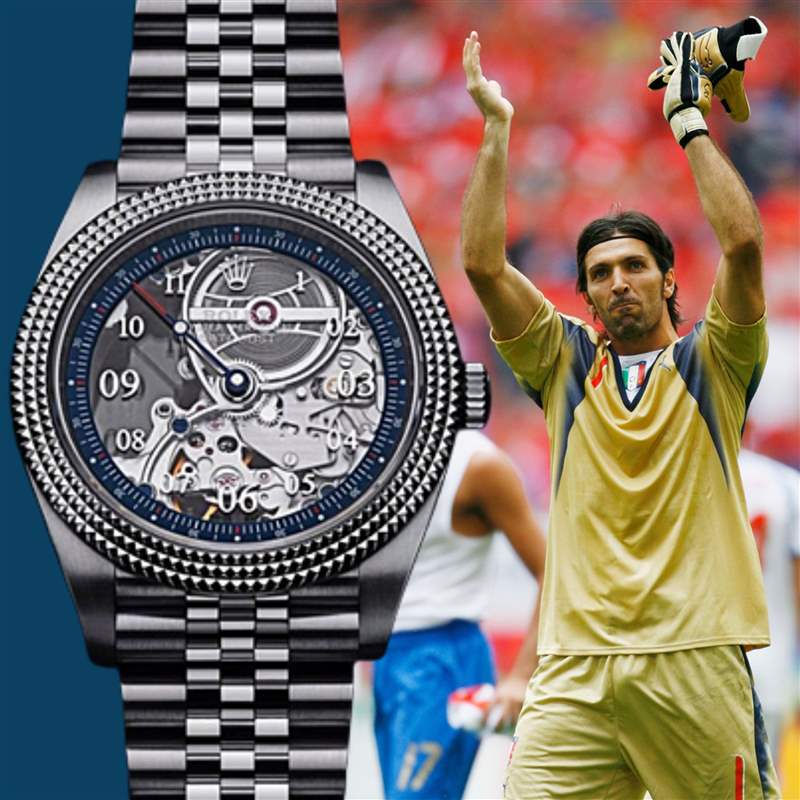 Gianluigi Buffon原本擁有的表是一款勞力士Datejust 126300搭配五珠帶的款式,他和Artisans de Genève在討論手表改裝的主題時有過一段深入的討論??雙方都同意每個人的一生都在與時間奮斗,在足球場上,守門員是一個很特殊的位置,因為他雖然是隊上的一份子,但是在己方球隊在進攻過程中,守門員往往必須孤獨地駐守在自家的球門前等待下個回合敵方的進攻時間;如同守門員一樣,制表師在專注于他們的工作時也會有一段長時間的獨立作業(yè)期,所以Artisans de Genève和Gianluigi Buffon決定要在Datejust 126300的改裝作品中呈現(xiàn)孤獨的意境,并傳達獨樹一幟的個性。