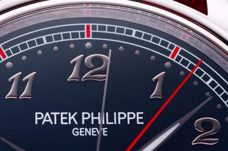 Ref. 5470的另一嶄新之處,便是它的1/10秒計(jì)時(shí)功能具備兩根計(jì)時(shí)秒針,當(dāng)開啟計(jì)時(shí)功能之后,兩根連動(dòng)的計(jì)時(shí)秒針同步出發(fā),銀色計(jì)時(shí)秒針為標(biāo)準(zhǔn)的60秒走一圈、紅色指針則為每12秒走一圈,前者用來判讀秒數(shù)、后者則是能夠判讀更精準(zhǔn)的1/10秒刻度,借此大幅提升閱讀性。為此面盤布局上也做了精妙的安排,像是銀色指針對應(yīng)的銀色圓點(diǎn),紅色指針則是對應(yīng)更外側(cè)的軌道式刻度,而且你會(huì)發(fā)現(xiàn)它的軌道式刻度并非連貫性的,而是以每10格刻度為單位、采內(nèi)外側(cè)對調(diào),這能讓視覺效果看起來更清楚。