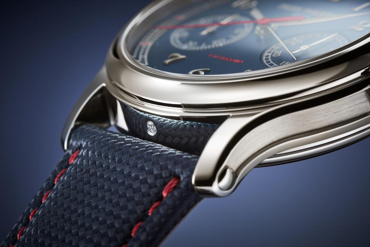 全新的Ref. 5470共計(jì)擁有31項(xiàng)專利技術(shù),其中7項(xiàng)是因?yàn)檫@項(xiàng)新裝置而設(shè),另一方面里頭使用了Oscillomax?矽擒縱套件,則是繼5550P之后第二度使用在量產(chǎn)表款之中。表徑為41mm鉑金表殼,藍(lán)色的面盤、紅色指針,以及相同配色的牛皮表帶與其縫線,是一款具備強(qiáng)烈運(yùn)動(dòng)外型的計(jì)時(shí)碼表。