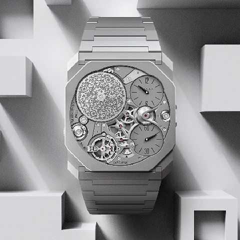 在Octo Finissimo Ultra面盤上可以看到發(fā)條盒的地方有QR Code的鐫刻,透過QR Code的掃描可以看到表款相關(guān)的訪談、制作工序、和機(jī)芯虛擬3D導(dǎo)覽等等,讓表主可以更加了解自己買的手表是什么來歷。另外寶格麗也與時俱進(jìn)搭上了NFT的順風(fēng)車,買到這十只限量版的Octo Finissimo Ultra藏家,都可以獲得專屬的NFT藝術(shù)作品,除了再度用超薄打破紀(jì)錄之外,也為品牌在NFT領(lǐng)域先進(jìn)行了一場暖身。