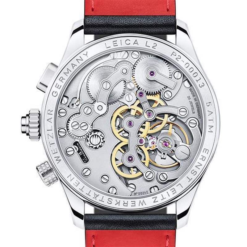 L1和L2的外型非常有橫掃各大設計獎項的帝王相,設計由曾為徠卡操刀過多款產品的Achim Heine負責,而徠卡在手表研發過程中曾向同鄉手表品牌HANHART取經、也咨詢過CHRONOSWISS創辦人Gerd-Rüdiger Lang的意見,最后選擇德國精密儀器公司Lehmann Pr?zision GmbH合作,一方面是因為他們是供應徠卡部分鏡頭組件的廠商,再者負責人Markus Lehmann本身也是鐘表愛好者,加上公司也生產制表的機器,甚至還有自己的手表品牌Lehmann Schramberg,表款設計得如何見仁見智,但機芯的板路倒是還滿別出心裁的好看。