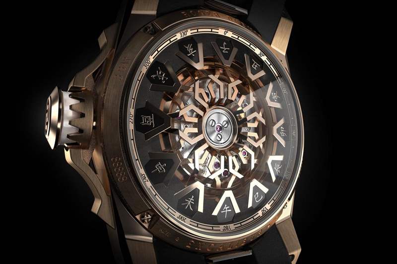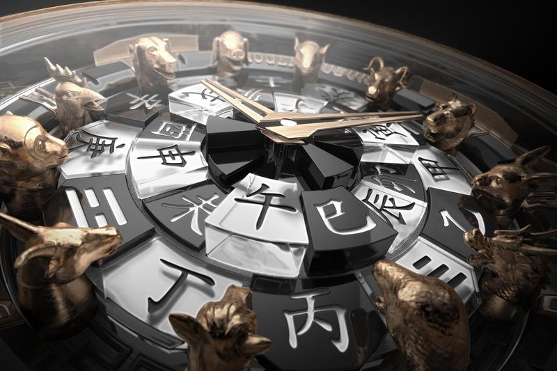羅杰杜彼圓桌騎士十二生肖腕表的面盤使用更多中華元素,包括天干地支、八卦,東方味十足。