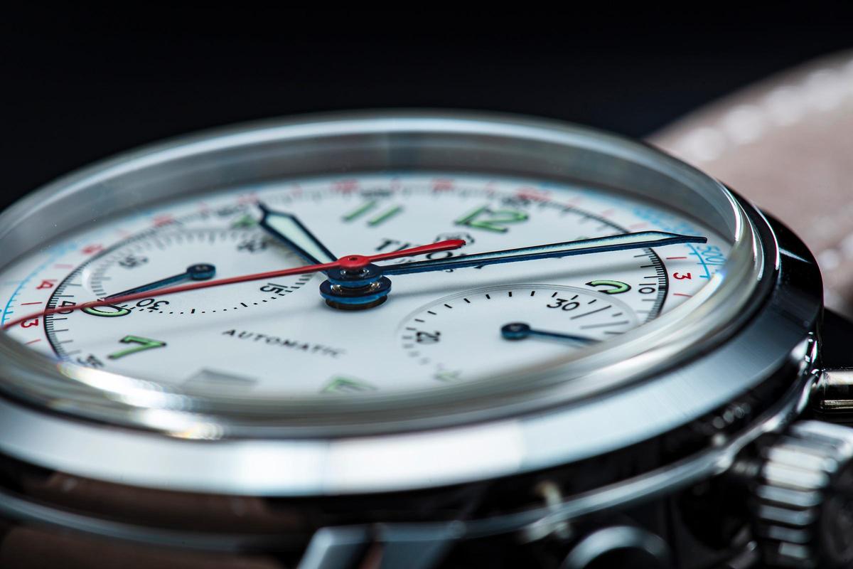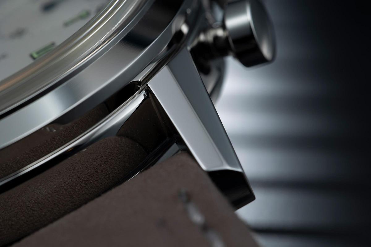 在這次的Heritage傳承系列計時碼表中還有幾個值得一提的地方,像是分針跟計時秒針的前端都會微微下彎,這是許多復刻表中會出現的要素,而因為這樣的做法,制作成本上會比一般的指針來得更高;另一個是表殼的造型,整體線條看起來剛硬簡潔,但無論是表耳、表圈都有許多細膩的切角,打磨質感非常好。