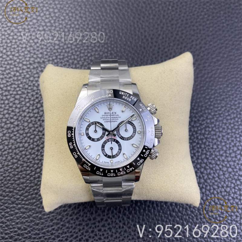 c廠勞力士迪通拿使用904L材料,4130機芯/n廠同款機芯,clean表盤,clean陶瓷圈buff工廠指針,厚度12.2-12.3之間,玻璃和表殼銜接的地方 完全透明,看不到任何白邊玻璃邊緣弧形跟原裝一致,玻璃凸出陶圈高度跟原裝一樣。陶瓷圈使用clean 字體更加立體圓潤陶瓷圈邊緣有輕微圓角,字釘有圓角打磨夜光填充高度適中,亮度也ok,字體印刷立體,黑色小圈尺寸與原裝一致,和表殼銜接的地方頂部無縫銜接,尖角那里,表帶/表殼 配合無縫隙表帶/殼、頭粒,頂部與表殼持平,尾部略微凹陷。從廠家文案來看這款c廠迪通拿做工方面頂級,是目前天花板級別產品,值得喜歡迪通拿的表友入手解毒!