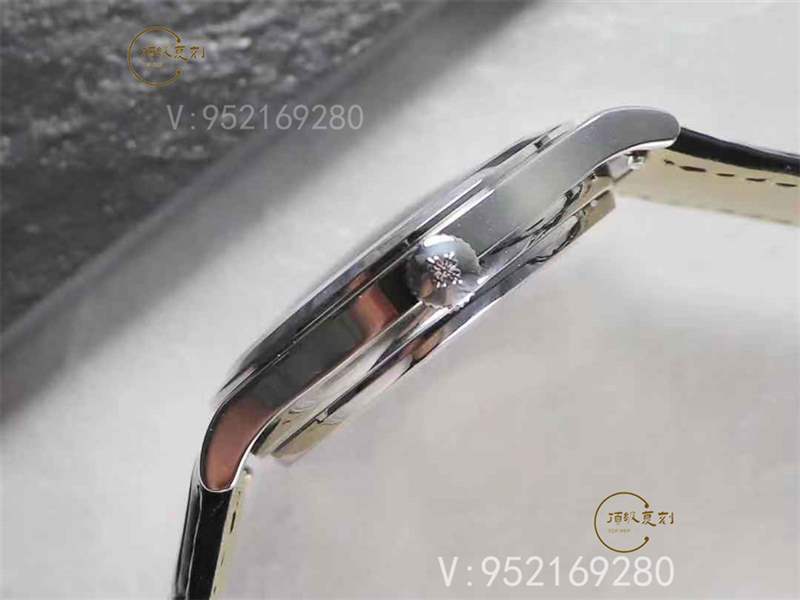 簡約干練的Calatrava圓形表殼極為低調,38.6mm的表經非常商務亦可休閑。機芯同樣誠意滿滿,搭載定制版原生兩針無歷珍珠陀機芯,可大大降低故障率。表盤同步正品工藝經過攝氏700°-850°的高溫反復燒制和16層手工微繪完成。