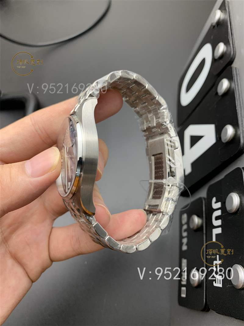 表帶與表扣:棕色小牛皮表帶分配一枚精約的針扣,大氣沉穩。MK整個針扣的質感仍是不輸正品,邊角的打磨處理細膩,佩戴上手舒適簡易,不怕墜落。針扣后邊的刻字,MK廠做復刻手表也是沒有偷工減料,大小和深淺都一比一。即使鋼帶,同樣精美,經過精雕細琢達到了與正品同樣的光澤度。