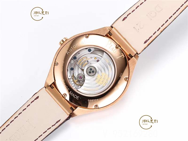 自動機械腕表,采用美優達9015機芯,性能穩定,不用擔心售后;自動垂太陽紋路打磨且雕刻精美伯爵LOGO;在這里,外做工比如后蓋以及螺絲等都整潔規矩,不過因為透底設計,我們查看正品的Cal.800P機芯結構就可以看出兩者的不同,比如避震器。