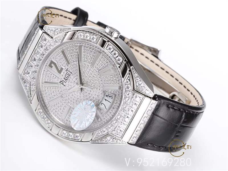 MKS廠新品超凡工藝,邂逅珠寶靈感,MK挑戰奢華極限—伯爵POLO系列滿天星,震撼上市。腕表一共采用564顆施華洛世奇頂級美鉆,枕形表殼鍍18k真金。完美呈現正品奢華璀璨的卓越風采。【表殼】枕形表殼,搭配微弧式表肩,每一個成品殼套都經過MK質檢員精挑細選,在進行珠寶鑲嵌加工。為了達到原裝的效果(整齊,鑲嵌風格統一)。表殼上78顆頂級人工美鉆,必須由一位珠寶鑲嵌師一氣呵成。【表盤】價值不菲的盤面共擁有486顆頂級施華洛世奇。寶石的大小,切工和火彩都經過嚴格篩選,確保一致。12個精品刻度標識,采用CNC切削成型,在由制表師耐心修潤,最后鑲貼而上。【機芯】9015改伯爵800P機芯,經久耐用,質量穩定。【表帶扣】嵌入式表帶與表肩緊密相接,使佩戴者感覺更加舒適貼手。