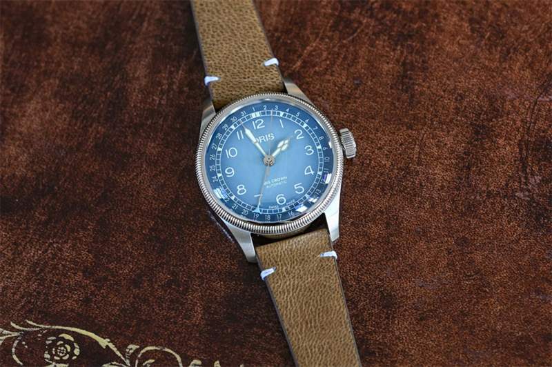 最貴的一款表放在了最后,盡管如此,它與我們開(kāi)頭定下的預(yù)算上限仍然距離甚遠(yuǎn)。豪利時(shí)的大表冠系列是一個(gè)絕對(duì)的經(jīng)典,而多種顏色和材質(zhì)的提供讓你不論何時(shí)看到它都會(huì)感覺(jué)到新鮮。這之中最符合夏季題材的表款,無(wú)疑便是擁有著一面天藍(lán)色漸變表盤(pán)的Cervo Volante聯(lián)名款腕表了。其上的教堂指針為表盤(pán)增添了幾分古典之美,而亮藍(lán)色尖端的日期指針則為大表冠系列的傳統(tǒng)注入了活潑的氛圍。它所搭配的表帶出自Cervo Volante之手,是由合法狩獵的馬鹿皮制成。通過(guò)藍(lán)寶石透底表背,便可看到其內(nèi)所搭載的Cal.754型自動(dòng)機(jī)芯,它的擺陀依然采用了標(biāo)志性的紅漆設(shè)計(jì)。