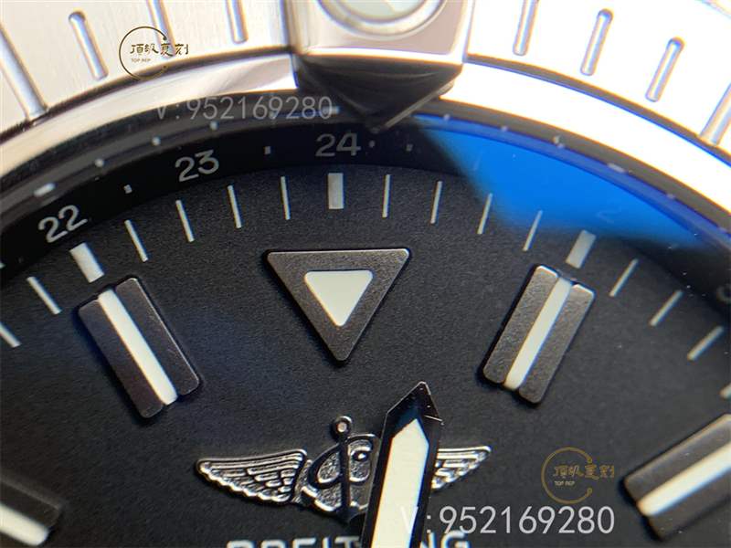 GF廠新品百年靈-復仇者雙時區自動機械腕表45(Avenger Automatic GMT 45)。原裝開模精鋼表殼(直徑45mm,厚度12.31mm),搭載Asia-2836機芯。可選擇精鋼表鏈或相匹配的黑色或藍色軍用防水皮革表帶。技術突破: 外圈夜光點所鑲嵌藍寶石玻璃與原裝一致帶“魚眼”效果(側看),制作難度極高,這也是作為鑒定是否GF出品的重要依據!G Factory,專注良心好品質。