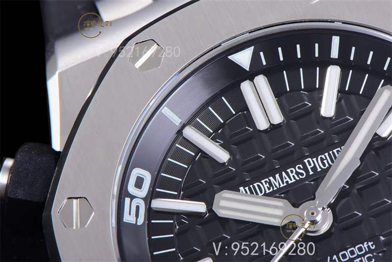 愛彼15710N廠和JF廠的表殼都是是采用拉絲處理的316精鋼,而且在邊緣倒角處進行了拋光,和正品已經是無限的接近了。把頭上也呈現出非常細膩的拉絲效果。拉絲刻字看著也非常舒服,細節上的做工相當完美。