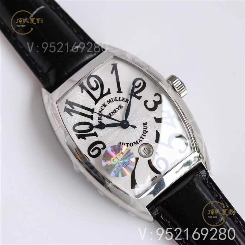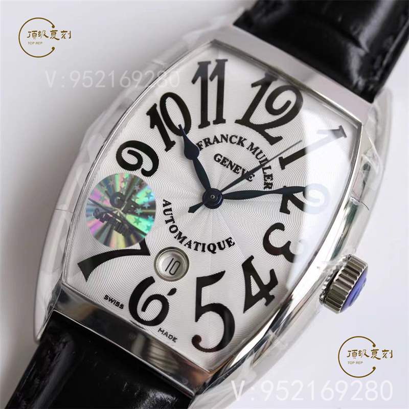 GF巔峰巨作Franck Muller 法穆蘭Casablanca系列8880腕表。表盤(pán)直徑為39.5X55.3mm。采用316L精鋼打造表殼。同時(shí)使用cnc數(shù)控機(jī)床精雕細(xì)琢表殼細(xì)節(jié)。搪瓷盤(pán)面經(jīng)過(guò)十幾道工序制作而成。鏡面采用藍(lán)寶石水晶玻璃并且日歷放大處理。表針采用頂級(jí)烤藍(lán)制作工藝、流光溢彩。字面夜光填充飽滿(mǎn)、邊緣光滑。無(wú)夜光溢出現(xiàn)象。
