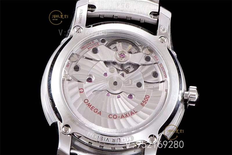 表扣激光雕刻對應的數字型號,同樣做了工藝處理,此款腕表可以有鋼帶以及鱷魚皮帶兩種搭配,看表迷朋友自己的想法搭配,一般是鋼帶,因為外面買不到這么好的鋼帶,但是可以配到各種的鱷魚皮帶;機芯搭載VS獨家復刻的8500機芯,不僅外觀一致,包括避震器的位置,甚至調時功能都能達到與原裝同步。日歷不再是快調,而是和原裝一致通過調節時針來調節。雙發條盒,充足上鏈,且動能可維持兩天以上,外觀優質,性能穩定。