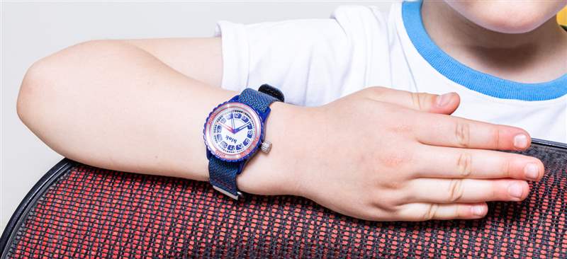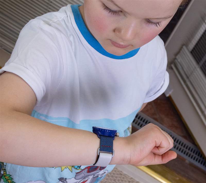 說到表帶,我認為考慮的是找到一個孩子們可以輕松穿上和脫下的解決方案。這里真的沒有一個解決方案,Blok 使用帶有折疊 Velcro 部分的一體式表帶的方法與兒童的任何表帶選擇一樣好。但是,我會說,我發現表帶有點僵硬。我個人不太關心表帶材料的來源或它們的可持續性(因為我不定期處理表帶)。相反,我關心他們的風格,更重要的是,舒適。Blok 會正確地說,隨著時間的推移,帶子會“磨損”并形成到您的手腕上,但孩子們不知道這一點或有耐心等待。我會選擇更柔韌的表帶材料,更容易纏繞在手腕上。這不是什么大不了的事,但現實情況是,僵硬的帶子實際上可能會阻止孩子們佩戴它,因為如果他們不立即感到舒適,他們可能會很挑剔并避免粘在身上的新東西。更何況,孩子們往往沒有耐心等待表帶戴上,甚至可能一開始就不給手表機會,迫使父母糾纏他們要求“多戴手表和表帶”會變得更舒服。”