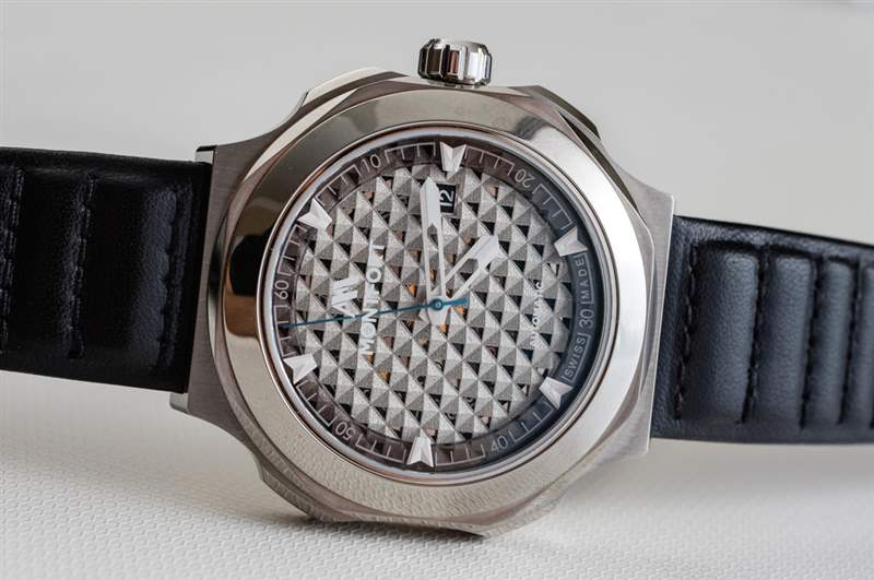 Montfort Strata James 的表盤(pán)有很多話要說(shuō),因?yàn)樗鞘直韮r(jià)值主張的重要組成部分。Montfort 自豪地宣稱(chēng)這是一款 3D 打印的金屬表盤(pán)——實(shí)現(xiàn)了傳統(tǒng)表盤(pán)生產(chǎn)技術(shù)無(wú)法達(dá)到的精度。我不會(huì)否認(rèn)這一點(diǎn)。主表盤(pán)有一種巴黎釘釘重復(fù)三角形圖案,看起來(lái)很酷。廣告訊息廣告信息結(jié)束