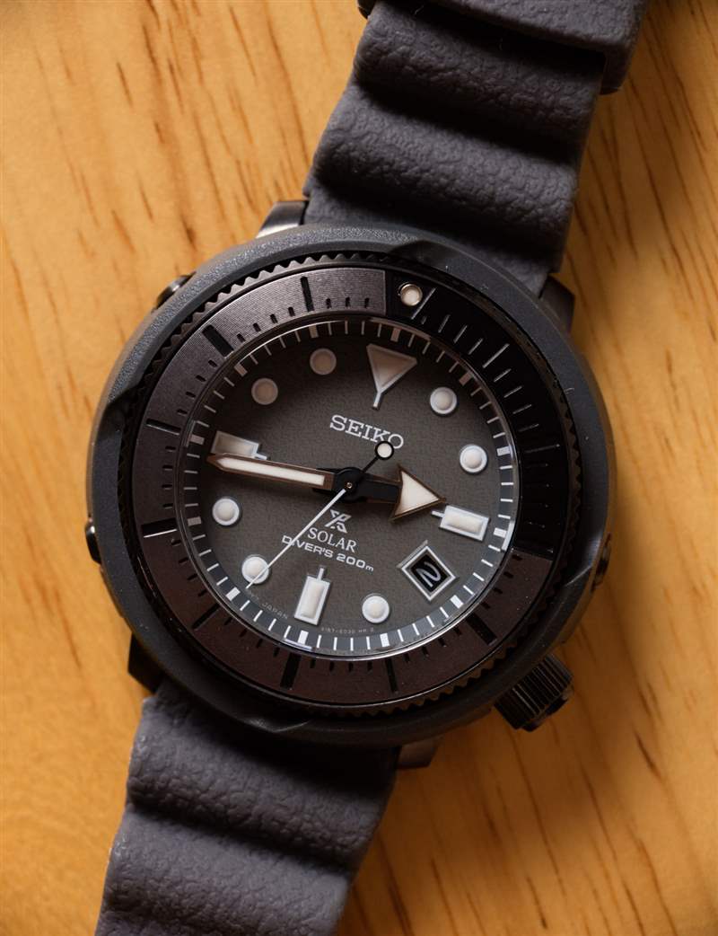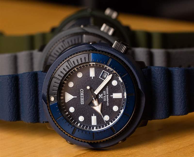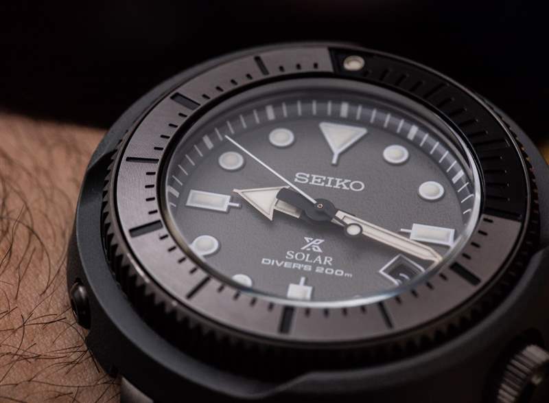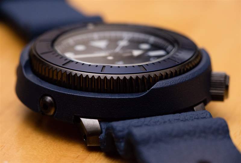 金槍魚風格的箱子之所以這樣命名,是因為圓形的高箱子在一些收藏家看來就像一個金槍魚罐頭。這款較小的 Tuna 表殼仍為 47 毫米寬(優于 50 毫米或更大),但非常耐磨。訣竅是極短的表耳和舒適的表帶。在我看來,這款手表的佩戴舒適度非常高,新的紋理硅膠表帶輕松舒適,緊貼手腕。精工與手表表盤上的表帶紋理相匹配——這是我以前在 Prospex 系列中從未見過的??偟膩碚f,精工在紋理表盤方面往往做得很好——想想著名且一直很受歡迎的 Grand Seiko Snowflake 表盤。毫無疑問,精工在其考究或正式的手表系列中獲得了紋理表盤的成功,我敢肯定,看看這種趨勢是否繼續在他們的運動手表(例如 Street Series)中具有吸引力會很有趣。精工開玩笑地暗示,表盤的紋理是為了暗示路面的外觀——因為這些是“街頭系列”手表。