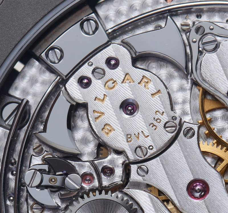 寶格麗 (Bulgari) 機(jī)芯 BVL 362 采用精美的手工打磨,頻率為 3 赫茲(21,600 次/小時(shí)),動(dòng)力儲(chǔ)存為 42 小時(shí)。它提供帶小秒針和三問報(bào)時(shí)裝置的時(shí)間,機(jī)芯后部可見音錘和音簧。在我看來,唯一缺少的就是動(dòng)力儲(chǔ)存指示器——原裝寶格麗 Octo Finissimo 手表所具有的功能。我確信這可以通過增加那么多的額外厚度來包括在內(nèi)。請(qǐng)記住,寶格麗在擁有世界上最薄的機(jī)芯厚度時(shí)僅擊敗江詩丹頓約 0.1 毫米。實(shí)際上,那是之前的江詩丹頓三問表,其機(jī)芯厚度僅為 3.28 毫米。