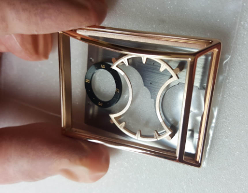 ArtyA 3 Gongs Minute Repeater, Regulator, & Double Axis Tourbillon 表殼的第二個(gè)靈感來(lái)自“水下房屋”。顯然,玻璃幕墻的結(jié)構(gòu)設(shè)計(jì)意味著存在于水下,有助于形成這種情況的想法。根據(jù) Artya 的說(shuō)法,這種形狀的一部分是為了提供更大的表殼體積,以便以更好的音量聽(tīng)到三問(wèn)報(bào)時(shí)器的報(bào)時(shí)聲。