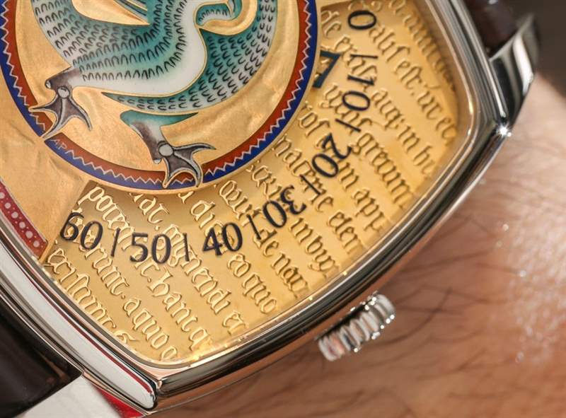 在江詩丹頓 Métiers d’Art Savoirs Enluminés 內部是全新的江詩丹頓自制口徑 1120 AT,這正是我喜歡支持的那種機制。為方便和視覺興趣而設計,自動機芯使用衛星系統顯示時間,將當前小時指示器拖動到分鐘刻度上。正如上一篇文章中提到的,這或多或少是大多數 Urwerk 手表指示時間的方式,有時也被稱為“星輪”,基于 Audemars Piguet 的一些開創性時計將其用于腕表,即使概念比那個古老得多。