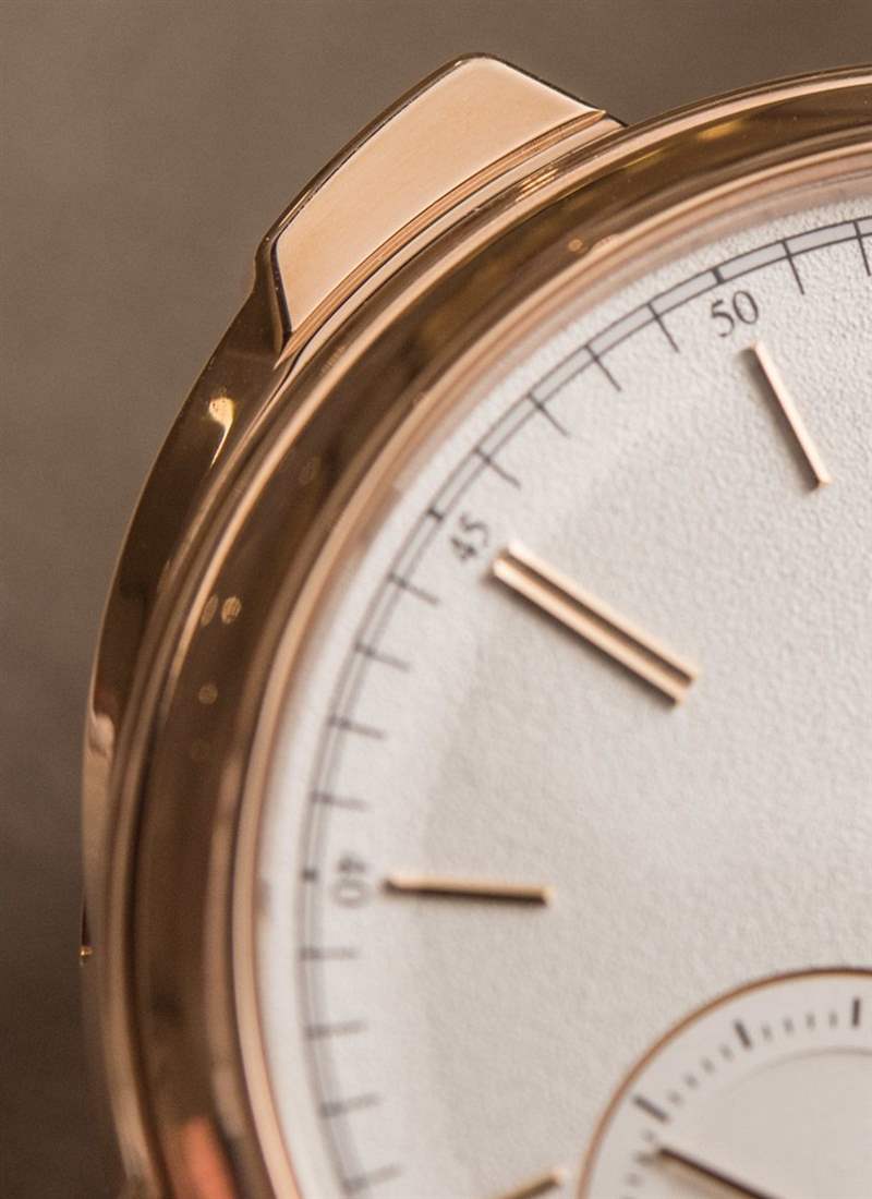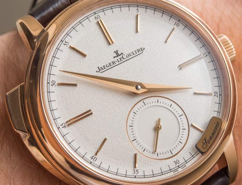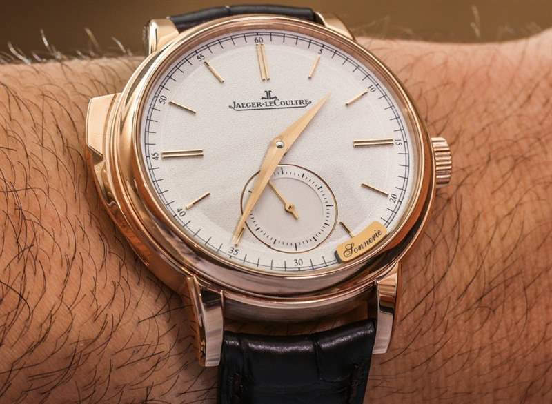 手表的欺騙性簡單性確實(shí)是其吸引力的一部分,不是嗎?事實(shí)上,表盤上那塊丑陋的小牌匾感覺像是某些設(shè)計(jì)師的感覺,好像有人可能會(huì)忘記手表有一個(gè)三問報(bào)時(shí)器。我很確定側(cè)面的大按鈕足以提醒,但我確實(shí)理解表盤的簡單清潔可能會(huì)混淆內(nèi)部制造的 Jaeger-LeCoultre 口徑 942 自動(dòng)機(jī)芯的實(shí)際復(fù)雜性。