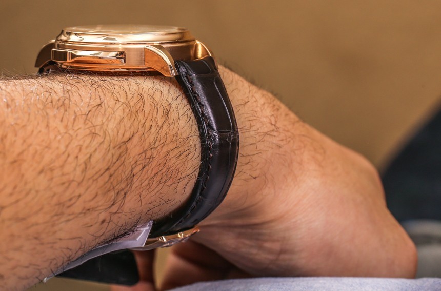 39 毫米的寬度對(duì)于現(xiàn)代三問報(bào)時(shí)器來說實(shí)際上很小。它們變得更小了,但這種尺寸的男士三問報(bào)時(shí)器在當(dāng)今的手表市場上幾乎聞所未聞。這實(shí)際上比我喜歡的大多數(shù)手表都要小,但厚度為 12.1 毫米,Jaeger-LeCoultre Master Grande Tradition Minute Repeater 真的不會(huì)感覺太小,即使它也適用于更纖細(xì)的手腕。