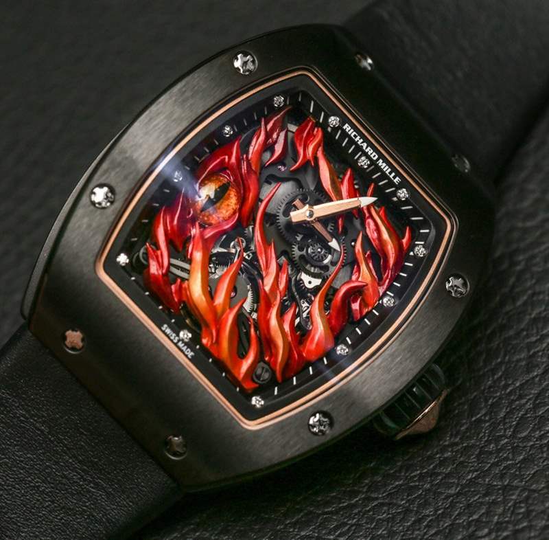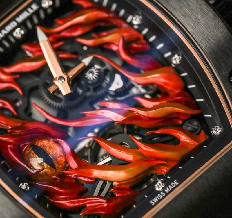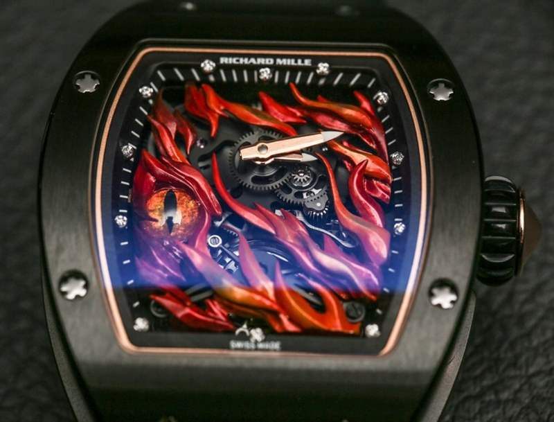 Richard Mille正迅速成為高預算微型模型愛好者的首選品牌。在香港 Watches & Wonders 2015 年末新款 Richard Mille 手表中,人們可以很容易地了解到 Mille 先生對他的手表(以及其他許多東西)非常認真作為超現代的微型藝術展示。像虎龍在陀飛輪前對峙的手表,或者讓流行文化準確的理查德米勒 RM 26-02 邪眼手表被火焰籠罩之類的東西都是奇怪的主題,實際上會分散人們的注意力,讓他們無法欣賞它們的瘋狂細節是。