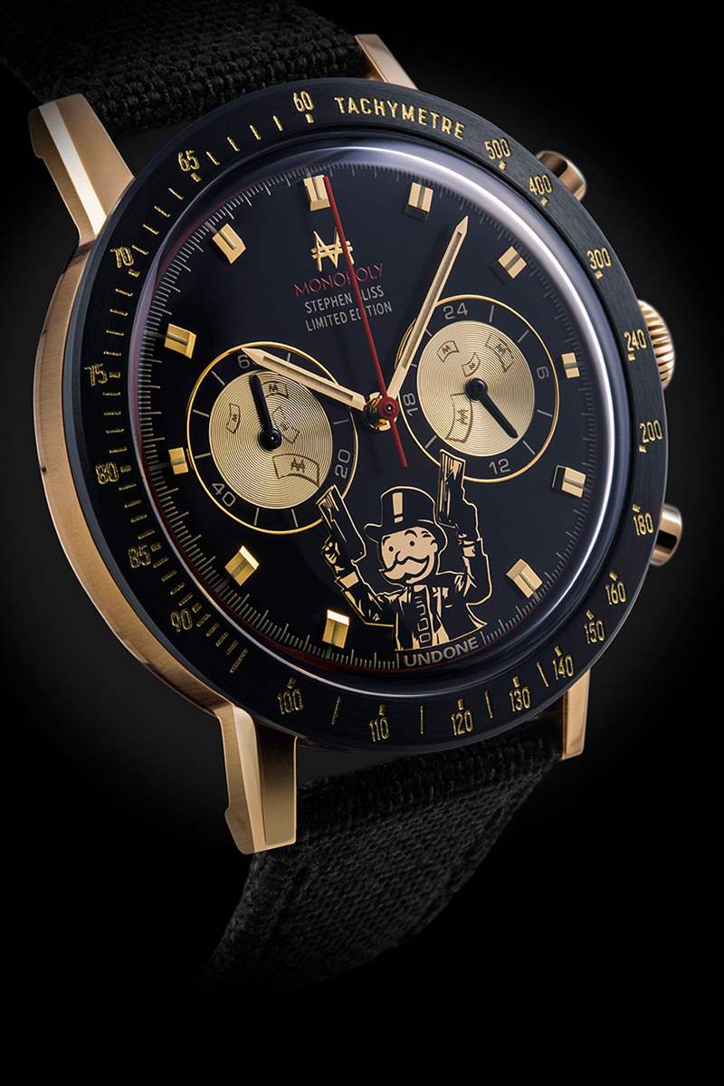 壟斷。這是一款旨在破壞友誼和破壞家庭的游戲,而且很有可能有人會在節日期間推出這款游戲,其中充滿了令人憤怒的吉祥物 Rich Uncle Pennybags——資本主義的化身。然而,當我們大多數人帶著恐懼和仇恨的心情看待這個留著小胡子的混蛋時,藝術家 Stephen Bliss 和定制手表品牌 Undone 卻采取了不同的方法。