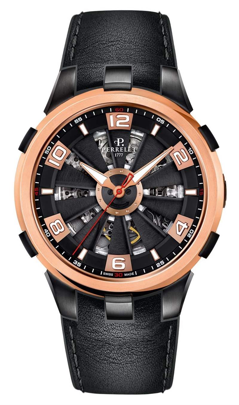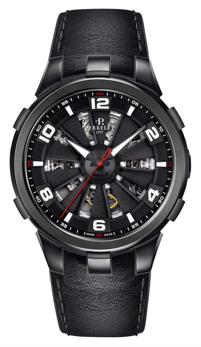 Perrelet 將提供三種型號的 Perrelet Turbine Skeleton,每種型號均配備黑色橡膠表帶或新款 Turbine 黑色皮革表帶。該系列從 A1082/1 和 A1082/1A 開始。這些是鋼制版本,分別代表橡膠表帶和皮革表帶上的手表型號。