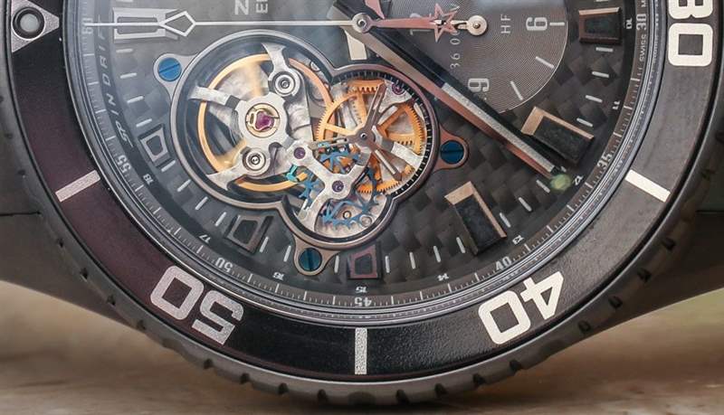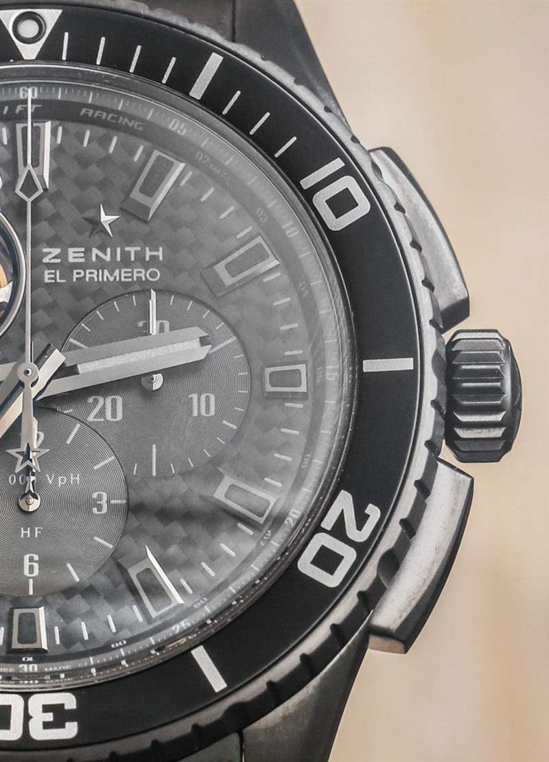 真力時(shí) El Primero 機(jī)芯很少是一個(gè)糟糕的選擇,很高興看到真力時(shí)提供各種健康的機(jī)芯。很容易讓人聯(lián)想到所有全面的手表系列都至少包含一款基于 El-Primero 的時(shí)計(jì)。對(duì)于這款黑色 DLC 涂層表殼中的 Stratos Spindrift 型號(hào),主題是現(xiàn)代和運(yùn)動(dòng)。你甚至有一個(gè)碳纖維表盤。真力時(shí)過去曾在El Primero 輕量級(jí)限量版鏤空腕表中嘗試采用全碳纖維表殼。