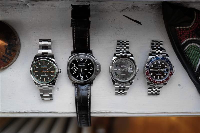 一路走來,他積累了以勞力士為中心的重量級腕表系列。每件作品都有一個獨特的背景故事——一些與他的個人生活有關,另一些則說明了手表購買的隨機性。“我選擇了這四個,因為每個人都對我的成功起到了作用。”