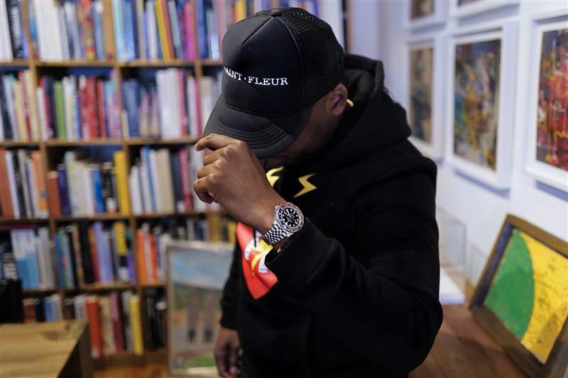 在布魯克林 Bed Stuy 的一條昏昏欲睡的街道上,有一座被腳手架遮擋的戰前步道。推開前門,映入眼簾的是一個被時間凍結的沒有陽光的入口通道。在三樓樓梯的頂端,Gardy St. Fleur 身穿黑色連帽衫,頭戴以白色粗體字樣刻有他名字的帽子。他經營著 Saint Fleur 藝術顧問,在這個空間之外迎合了像 Kyrie Irving 和 Caris LeVert 這樣的 NBA 球星。