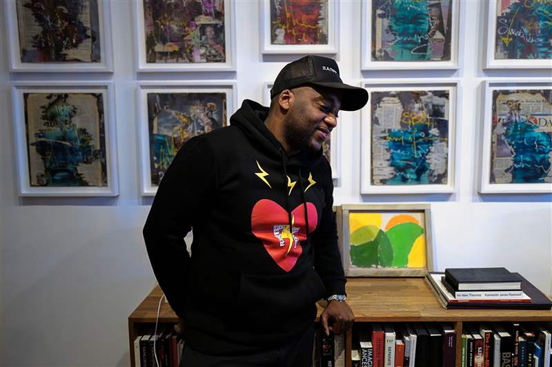 St. Fleur 開發了一種整體的建議方法。“對于客戶來說,最重要的是讓他們走出自己的舒適區。球員們不會來找我買一幅籃球畫,”他說。“我的服務不是那樣。我更感興趣的是建立一個歷史性的收集,以了解藝術在社會中扮演的角色。我給我的客戶發送書籍和播客,以便他們了解藝術。”