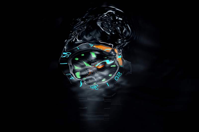 此外,清晰讀時的表現在水底深處攸關重要,為了提高這方面的表現,TAG Heuer Aquaracer Superdiver 1000運用了最高級數的Super- LumiNova?夜光涂層:SLN Grade X1,效果非常明顯,即使在千米水深也強烈光亮,即使在黑暗中亦能發揮最佳清晰讀時表現。
