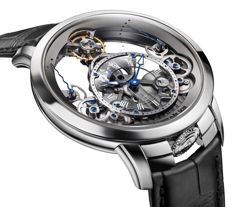 Arnold & Son 在瑞士的 La Joux-Perret 手表制造商生產(chǎn),這意味著所有機芯都是內部制造的。他們生產(chǎn)了一些非常令人印象深刻且巧妙的機械裝置,這些機械裝置的外觀和操作方式都吸引了鐘表愛好者。時間金字塔內部是 Calibre A&S1615 手動上鏈機芯,厚度僅為 4.4 毫米。它以 21,600 bph 的速度運行,并具有 90 小時的超長動力儲存。
