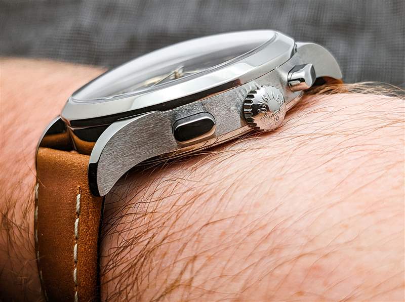 浪琴 (Longines) 將 Record Heritage 與兩種表帶搭配。第一個(gè)是復(fù)雜的多鏈節(jié)不銹鋼表鏈,但我們的評(píng)測(cè)樣品是在馬鞍棕色皮革表帶上送達(dá)的。從表面上看,這是一款經(jīng)典且用途廣泛的選擇,具有均勻的啞光質(zhì)地和干凈的灰白色對(duì)比色縫線(xiàn)。在實(shí)踐中,雖然它的外觀簡(jiǎn)單且用途廣泛,但表帶顯然很硬,可能需要長(zhǎng)時(shí)間的磨合才能完全貼合手腕而不會(huì)感到不適和擠壓。也就是說(shuō),浪琴表 Record Heritage 簡(jiǎn)潔、經(jīng)典的整體外觀應(yīng)該可以搭配各種表帶,打造更加定制的感覺(jué)。廣告留言廣告信息結(jié)束