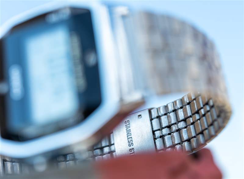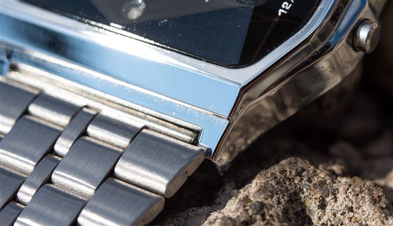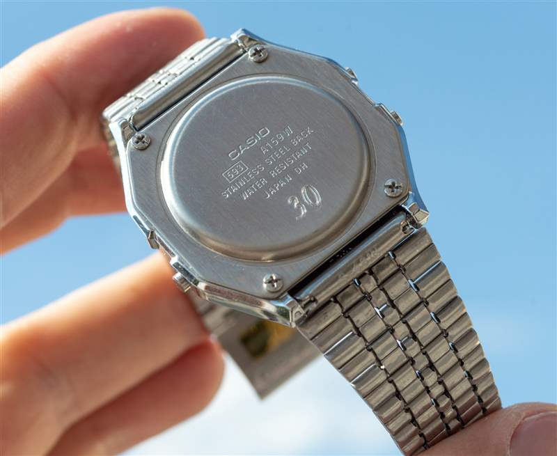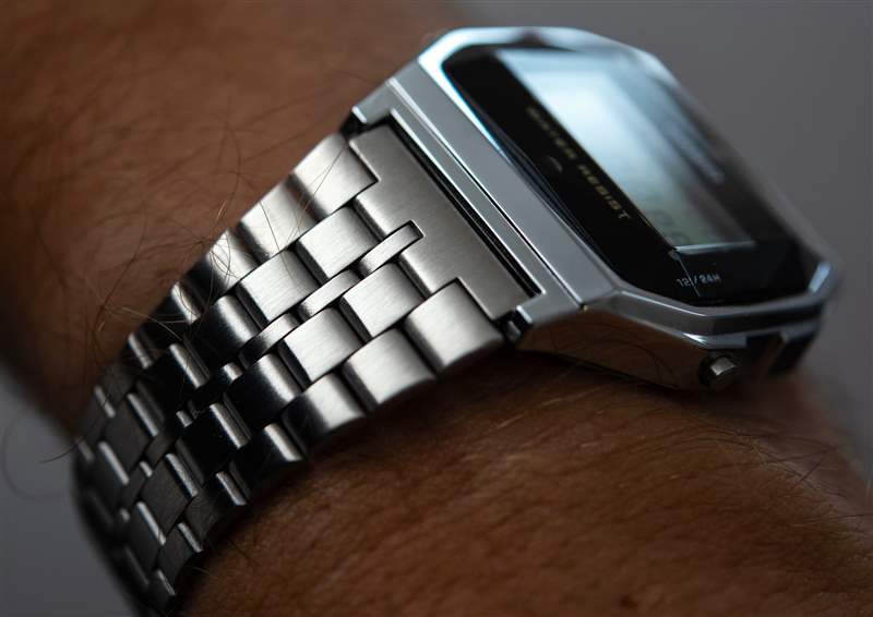 然后是手表本身,這就是樂趣的開始。首先,讓我們澄清一下我們正在看的是什么。卡西歐 A159WAD-1D 尺寸為 36.8 毫米 x 33.2 毫米,厚度僅為 9.7 毫米,重量僅為 45 克或 1.58 盎司。拿起它,顯然是五件式鏈節(jié)手鐲發(fā)出響亮的嘎嘎聲,不僅在打開的表扣周圍的松散端,甚至在表耳之間。末端鏈節(jié)的公差水平如此之大,以至于整個(gè)手鏈在彈簧桿上滑動(dòng)時(shí)都會(huì)在表耳之間搖晃。盡管嘎嘎聲很便宜,而且勞力士蠔式手鏈的單個(gè)鏈節(jié)感覺比整個(gè)裝置更堅(jiān)固、更昂貴,但你仍然不會(huì)覺得它很快就會(huì)分解或從手腕上掉下來。感覺就像一塊已經(jīng)戴了20-30年的老勞力士。好的一面?和很多寬松的手鐲一樣,這款也很舒服,更貼合手腕的弧度。雖然你的里程數(shù)可能會(huì)有所不同,但我在穿著過程中沒有遇到拉毛的情況——令人驚訝的消息,事實(shí)上,因?yàn)槲移诖芏唷4魃鲜直頃r(shí)可能會(huì)瞬間發(fā)生,但永遠(yuǎn)不會(huì)在佩戴時(shí)發(fā)生。廣告留言廣告信息結(jié)束