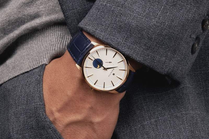 起點是優(yōu)雅的精鋼或玫瑰金表殼。它是典型的正裝手表形狀,帶有纖薄優(yōu)雅的表耳和拋光處理。有一些拉絲裝飾可以增加奢華的對比,但除此之外它本身就是簡單的。然而,最大的變化是表盤。