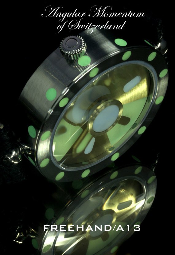 我真的認(rèn)為每個(gè)人都需要一塊由Angular Momentum設(shè)計(jì)的基于“émail-lumineuse”的手表。該化合物是一種特殊的搪瓷和發(fā)光劑混合物,它們做得很好。你已經(jīng)看到了lume,然后你已經(jīng)看到了Angular Momentum lume。你會(huì)想起新阿凡達(dá)電影中夜間的叢林場(chǎng)景。明白我的意思嗎?所有這些生物發(fā)光色調(diào)一起使眼睛變得非常漂亮。角動(dòng)量一直在玩設(shè)計(jì),這是較新的設(shè)計(jì)之一。部分放射性警告,部分墨魚,這款最新的?Freehand TEC/A13 手表是即將到來(lái)的設(shè)計(jì)的有趣標(biāo)志。我真的很喜歡表圈上的大夜光點(diǎn),它們繼續(xù)鏡像在表圈的側(cè)面。這是一種非常有趣的風(fēng)格,我認(rèn)為它的效果非常好。