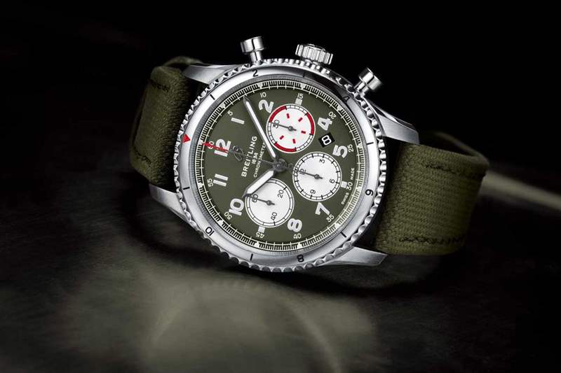 自2017年金牌CEO Georges Kern成為Breilting的掌陀人,很多產品都變得年輕化,如新系列Aviator 8便走摩登一點的設計路線。這枚Aviator 8 B01 Chronograph 43 Curtiss Warhawk軍表特別向美國飛機制造商Curtiss Wright及其最著名的Curtiss P-40 Warhawk戰斗機致敬。腕表搭配軍綠色啞光表盤,加上雙向旋轉表圈,配置阿拉伯數字、時標和中央紅色計時指針,細節十足。而且腕表更用上品牌自家的B01機芯,擁有70小時動力儲備,夠實用。