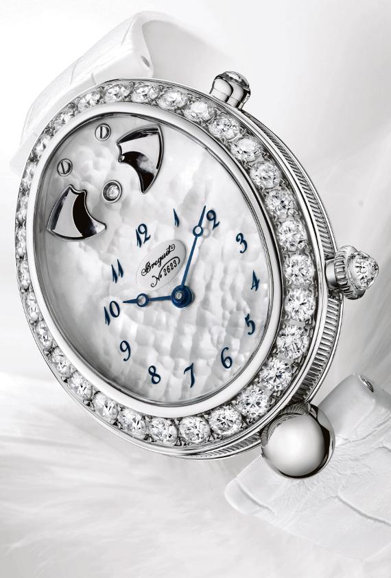 目前的Reine de Naples系列手表的靈感來自亞伯拉罕-路易·寶璣為拿破侖·波拿巴的妹妹那不勒斯女王卡羅琳設(shè)計的手表。為紀念原版腕表問世200周年,寶璣為該系列推出了一款名為自動敲擊的大復(fù)雜功能腕表。每小時,位于11點鐘和1點鐘位置的視窗中的兩枚錘子都會提醒佩戴者,重復(fù)三次雙擊又過了一個小時。寶璣做了一個所謂的sonnerie en passant的變體,一種每小時敲響一次的傳球。