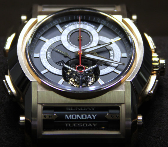 甚至Maitres du Temps的一些夢之隊設計師也不認為這是可以做到的。你如何把像第一章這樣帶有頂部和底部安裝圓柱體的手表變成圓形?酒桶形版本足夠大。你也許可以把它變成正方形,但圓形呢?只是沒有意義。還。。。他們做到了。使表盤和表殼中央部分變圓,并延伸表耳段。瞧!除了形狀和風格之外,Chapter One Round手表與標準Chapter One手表具有相同的機芯和功能,我最初在這里寫過(更具技術性),并在動手處理后在這里分享。雖然第一章是更限量版的一部分,限量版只有11枚,而且比標準的第一章更貴。它還保留了我最喜歡的第一章手表部分,這是帶有“滑動然后推入”動作的酷炫安全推動器。