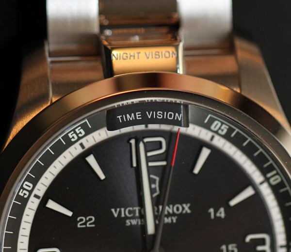 Swiss Army 在手表上的燈光“隱藏”方面做得很好。這就是最新一代夜視儀設計的重點。我相信這是為了保留夜視儀中流行的所有功能,但創造出更正式、更考究的外觀。在這一點上,我覺得瑞士軍隊取得了成功。表盤令人愉悅且易于閱讀。手感覺有點太小了,但它們非常好。我認為我有這種感覺,因為我主要習慣瑞士軍隊在他們的手表上有更大的指針。表盤也不平。白色分鐘刻度圈有一個層次,然后是表盤其余部分的更高層次,并且似乎應用了小時刻度。傾斜的法蘭環使表盤看起來最大。