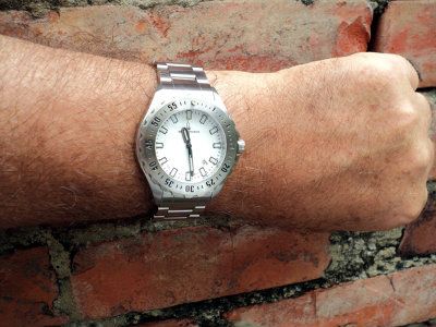 如圖所示,我在手腕關節上方佩戴了一塊手表。我的非科學測量表明這個區域的直徑只有 20 毫米左右。我讓當地的手表店從提供的手鐲上取下一 (1) 個鏈節——現在很合適。