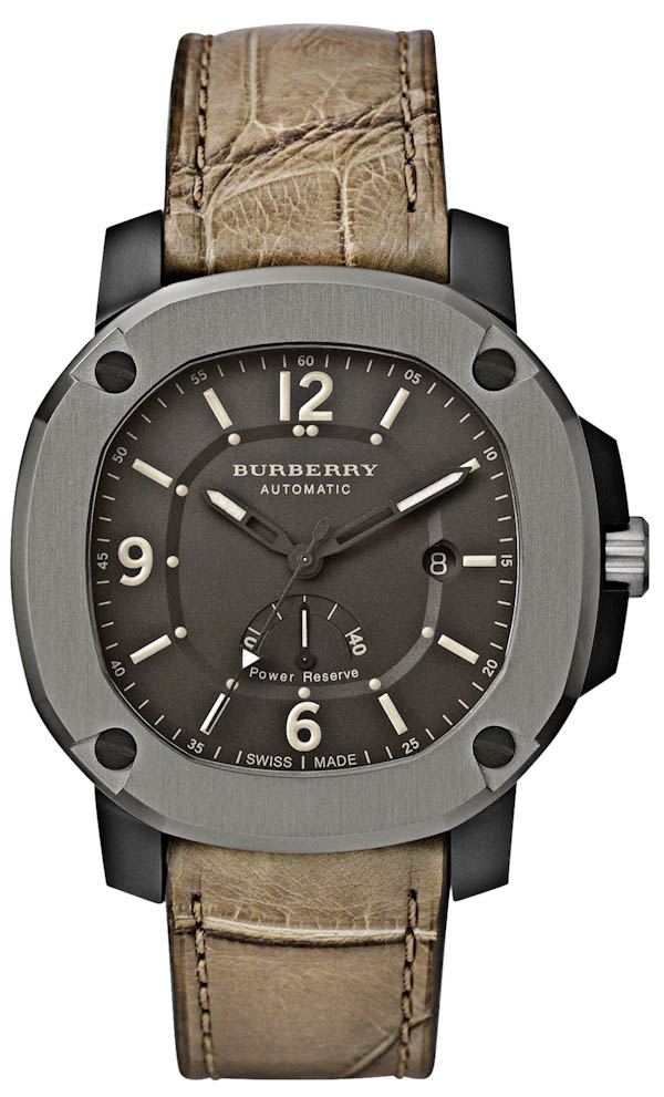 首先,有四種主要的 Burberry 英國時計。商業旗艦型號(但不太可能成為暢銷款)是外觀獨特的英國自動動力儲存手表。它采用 47 毫米寬的大號鋼制表殼,具有 IP 涂層炮銅色飾面。什么,沒有PVD?表殼設計看起來很酷,并有一個可以看到機械機芯的展覽底蓋。事實上,所有的英國機械表都是如此。表帶的選擇看起來不錯,表殼做舊。Burberry 稱之為“風衣色鱷魚皮”。具有諷刺意味的是,盡管它們指的是大衣,但聽起來一點也不奢華。雖然您以前從未見過表盤,但您以前見過像這樣的表盤。這是一個軍用風格的表盤,帶有青銅色和足夠的夜間觀看亮度。