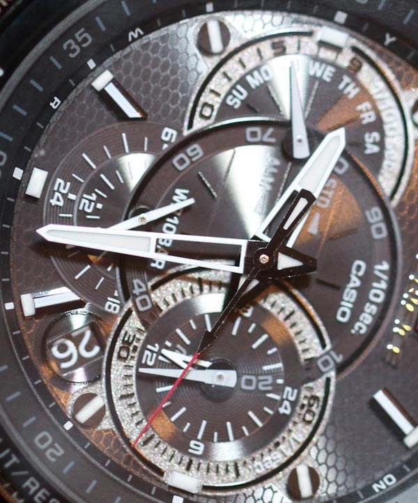 為了錢,表盤的細節非常精美——如今似乎只有日本人才能做到這一點。此外,表盤的設計需要讓光線通過,為機芯充電。表盤的多層次外觀很帥氣,并盡可能保持易讀性。值得慶幸的是,卡西歐在時標以及時針和分針上應用了 lume。我喜歡沉浸在所有的小標記、索引、符號和參考點中。我不一定要全部使用它們,但我確實喜歡看這些和其他 Edifice 手表。像這樣的手表好的一面和壞的一面是它們仍然是由鐵桿手表書呆子工程師設計的。這些家伙真的盡一切可能確保完整的功能永遠不會從他們的作品中刪除。